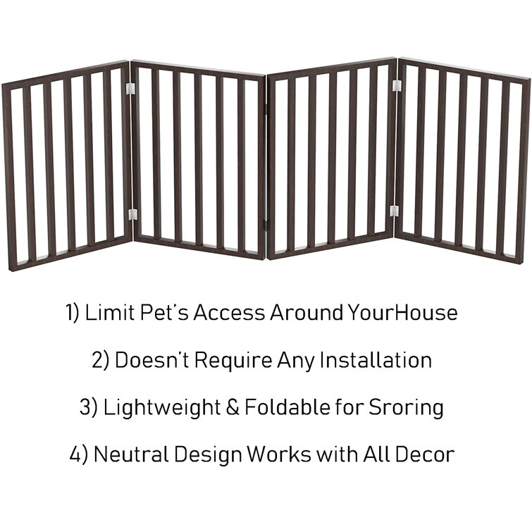 Tucker Murphy Pet 4 Panel Free Standing Pet Gate Folding Accordion Style Solid Wood Dog Gate Dog Fence For Doorway Stair House Wayfair